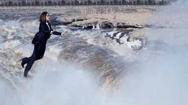 藝術(shù)家懸掛黃河壺口瀑布,上演#大地音樂#行為藝術(shù)