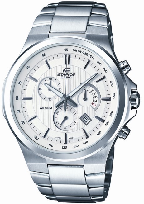 EFR-500D-7A在本季與SHEEN女表品牌SHN-5019D為情侶對(duì)表款,是備受關(guān)注的七夕情人節(jié)最佳的時(shí)尚商務(wù)男表。表盤經(jīng)過拋光的銀色金屬制作,白色文字板上嵌有直線條紋,增加了光澤感和精致感,耐磨的不銹鋼表帶使配戴起來更加剛勁有力。