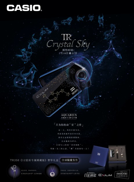 ※ TR350SW-Xcrystal sky十二星座專屬臻藏版1月18日起在指定門店和各大電商網(wǎng)絡(luò)開始預(yù)售。詳情請(qǐng)關(guān)注:http://www.casio.com.cn/news/1442.html