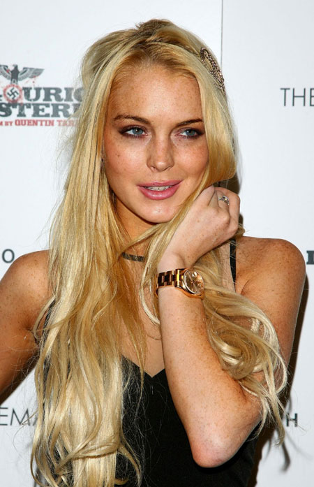 紐約當?shù)貢r間8月17日,電影《無恥混蛋》(Inglourious Basterds)紐約放映式舉行。林賽·羅翰(Lindsay Lohan)著Wolford雙色拼接美體衣,搭配黑色超短裙,手上戴著Cartier Love手鐲,頭上的復(fù)古金色發(fā)飾個性時髦。