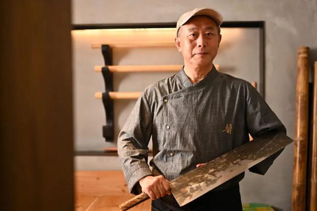 這道幾近失傳的菜,是由廚師坐在2米長(zhǎng)的竹竿上反復(fù)碾壓,用身體的重量將面團(tuán)打壓成片,直到搟出來(lái)的面皮像紙一樣薄,再用師傅傳下來(lái)的兩斤重大刀,以“觀音掌”獨(dú)門功夫切出不到1毫米,細(xì)如發(fā)絲的面條。一碗面,全是功夫。