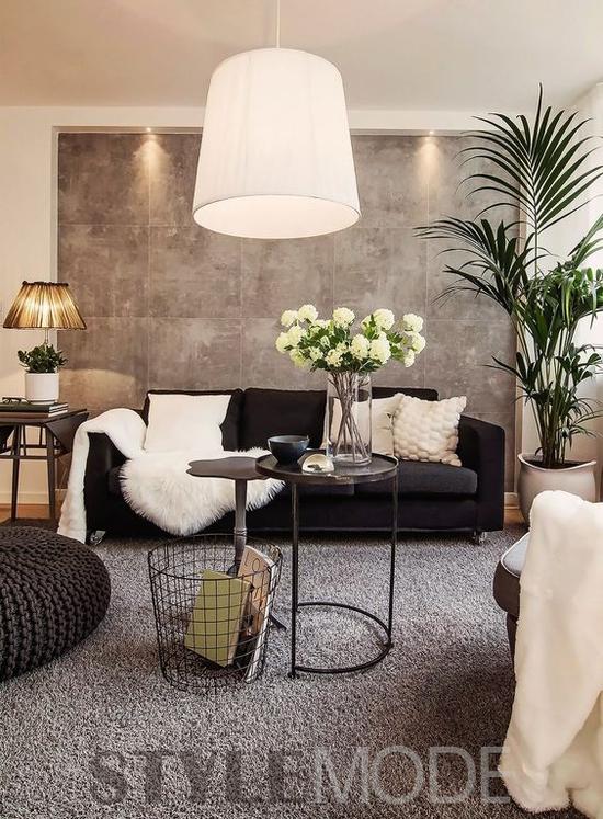 2-3個(gè)茶幾組合,在組合、款式、尺寸上稍微變化,就能打破大茶幾在空間中的沉悶感。除了放在正中間的茶幾外,在沙發(fā)扶手旁擺放一個(gè)裝飾性小茶幾,放一盆綠植、幾本書,增加空間的趣味性。